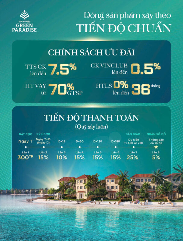 - Chiết khấu lên đến 7,5% cho khách hàng thanh toán sớm.